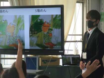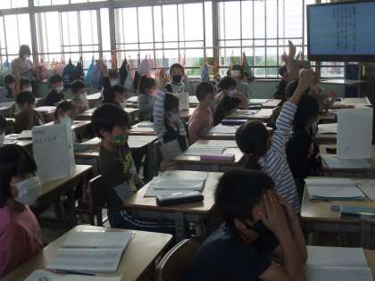 「しっかりと音読もでき、物語文の読みを深めることができています。かわいい子どもたちですね」と褒めていただきました。