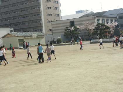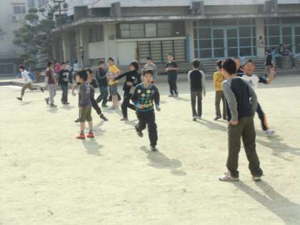グランドで遊ぶ子どもたちです。昔も今も変わらないな、と思いながら見ています。自分の45年前の姿を探しています。