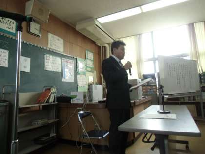参観授業のあと、学級懇談にご参加いただき、そのあと、PTA総会となりました。小泉会長よりごあいさつとPTA役員、実行委員の皆様を紹介いただきました。今年一年よろしくお願いします。そのあと、南郷小学校の新転任の先生を校長より紹介しました。