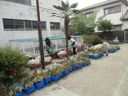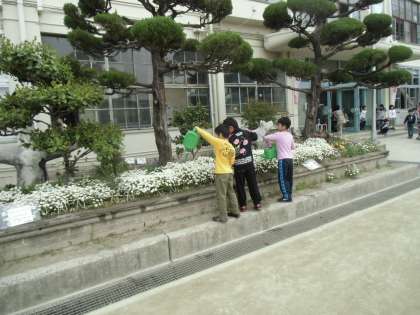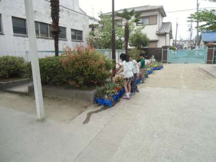 朝のグランドをスケッチしました。所狭しとボール遊びをしている中、花の水やりをしてくれていました。ありがとう。
