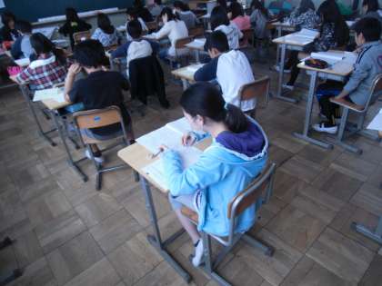 今日は、日本全国で同じテストが行われています。全国学力・学習状況調査です。小学校では6年生が、中学校では3年生が受けました。小学校では、国語A・算数A(知識中心)、国語B・算数B(活用中心)、そして、学習状況に関する質問(アンケート)が行われました。