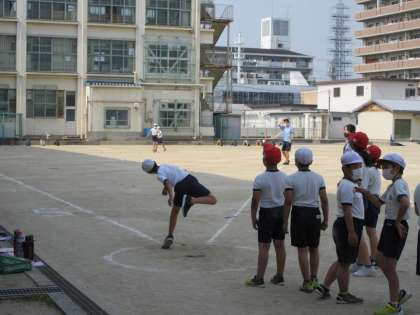 体力テストの種目の一つです。5年生・6年生が挑戦しました。