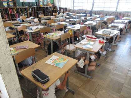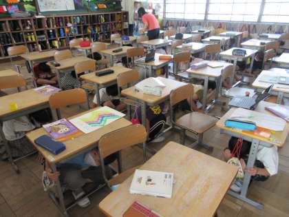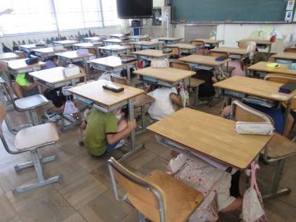 防災のための訓練を積み重ね、遭遇したときに、慌てず冷静に正しい判断ができる児童の育成に努めています。