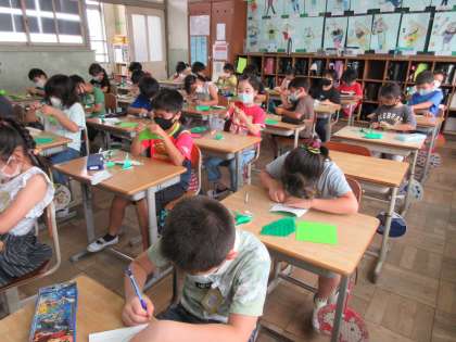 6時間目。3年生(図工)・6年生(学級会)の様子です。