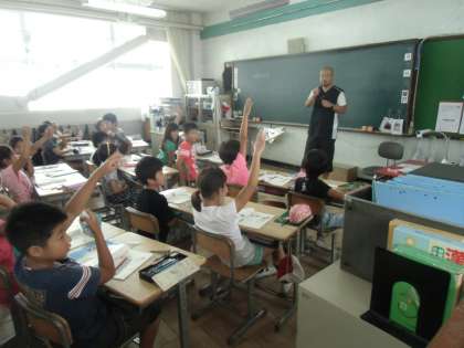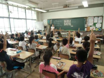 学校協議員の方といっしょに教室を回っていると、すごく多くの人が手を挙げていたので、思わず撮影しました。すばらしい。