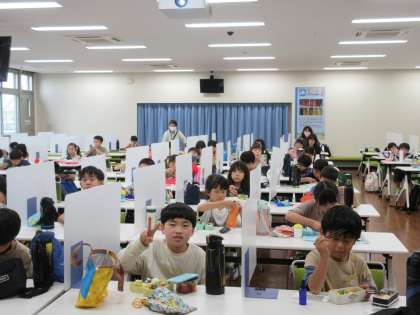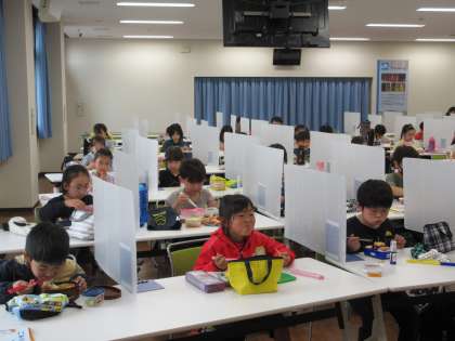 外で食べる予定でしたが、雨のため研修室をお借りしました。
