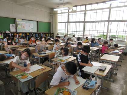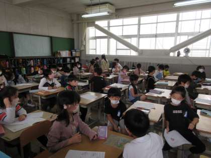 2年生:算数・校区探検の振り返りの様子です。