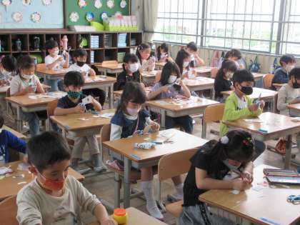 1年生:図工(はさみの使い方2)・終わりの会の様子です。