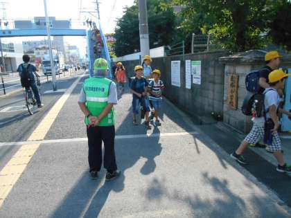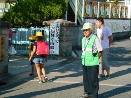 今日はPTA会長が朝のあいさつ運動に参加してくださいました。ありがとうございます。