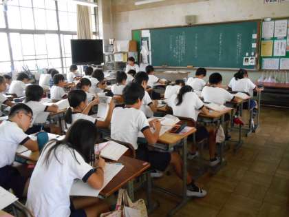 6年生が先日のピースおおさかの社会見学をふまえて平和学習に取り組んでいました。シーンとして黙々と書いていました。
