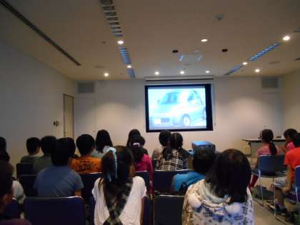 ダイハツ自動車に着いて、工場の説明を聞いているところです。部品の組み立ての細かな流れと検査まで詳しく聞きました。