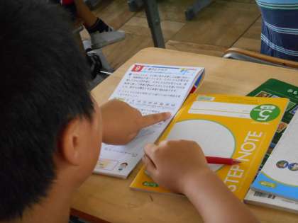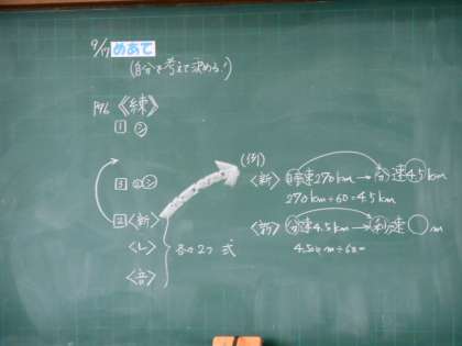 6年生の算数は少人数授業を実施しています。一つのクラスを二つに分けてやっています。「めあて」をはっきりさせ、全員参加の授業ができていました。