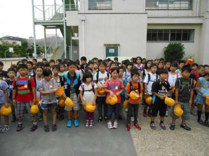今日は3年生の遠足に行ってきました。橿原市にある昆虫館に行きました。写真は、出発式の様子です。きちんと話が聞けました。