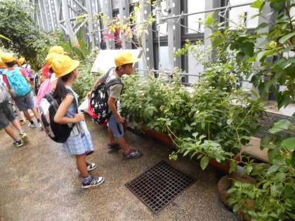 ここは、生きたチョウがたくさん飛んでいました。子どもたちの中にはチョウが苦手な子もいましたが、じっくり観察する子もたくさんいました。