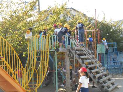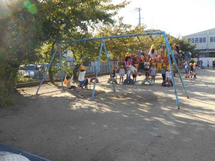 百年ランドの遊具、低学年だけではなく、高学年も遊んでいます。