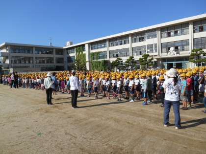 今日は月に一度の朝礼がありました。はじめに、教育実習で来られている國田健作先生の自己紹介がありました。次に、校長先生から、1、隣の校区で「自転車の後ろに乗せてあげる。」と声をかけられた子どもがいるので、注意すること。2、運動場では走り回って大声を出して遊んだとしても、家に帰ってから家の前などで遊ぶ時は、運動場と同じように遊んではいけません。いろいろな事件が起きて、家の前で遊ぶこともあるだろうけど、大声を出さず、車に気をつけること、を話しました。