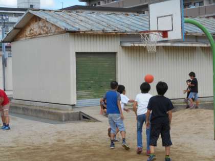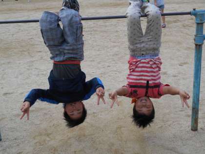 昼休みの子どもたちです。いろいろ声をかけてくれます。2枚目は、仲良く「こうもり」になっているところを撮影しました。