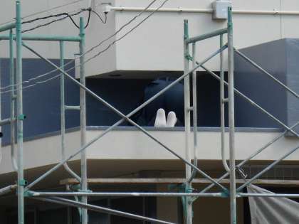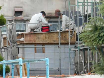 1枚目は、トイレの上で作業されているところです。2枚目は、お尻だけ見えますが、』奥まったところを工事されています。