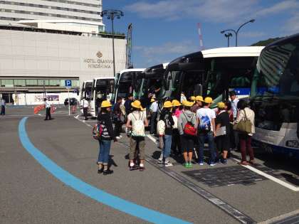 広島駅到着です。今からバスに乗って原爆ドームに向かいます。