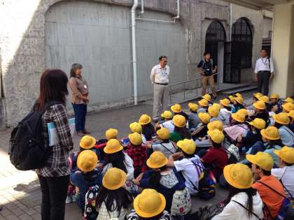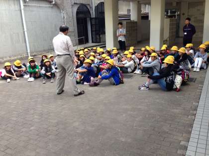 爆心地から数百メートルの本川小学校を訪問しました。ガイドの二人の方が待っておられました。