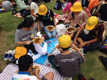 お昼です。お昼は名物広島焼きでした。アツアツで、おいしいおいしい。ボリュームたっぷりです。