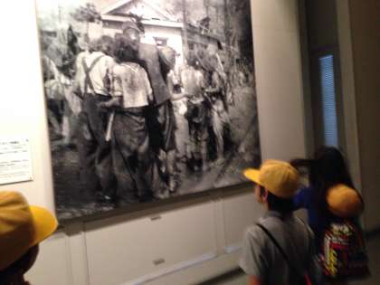 平和資料館の中を見学しました。今日は小学校、中学校、外国の方と大混雑でした。でも、しっかり見ていました。