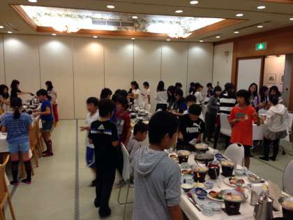 お待ちかねの夕食です。お吸い物、ごはん、お茶と自分たちでやりました。