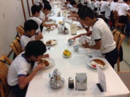 修学旅行最後の食事です。体験プログラ2が少し時間がかかり、バタバタしたなかでのカレーでした。