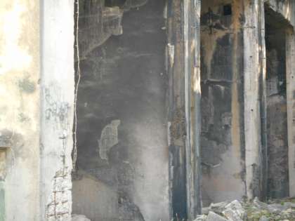 日が空いてすみません。修学旅行で紹介ていなかった写真を少しアップします。これらの写真は大久野島一帯に散らばる毒ガス工場の跡です。1・2枚目は毒ガスの大きなタンクが保存されていた場所です。壁が黒くなっているでしょ。これは、戦後、アメリカ軍が毒ガスを処理するのに火炎放射機で処理したため残ったものらしいです。壁が焼けているのです。