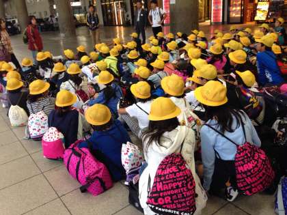 新大阪駅での六年生です。このあと、バスに乗りました。