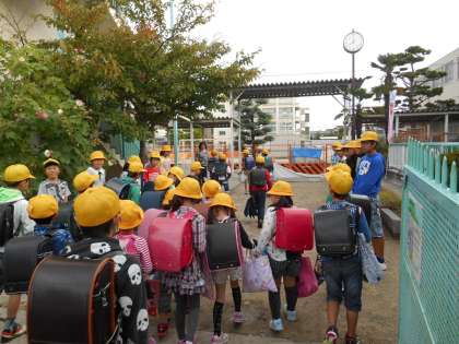 いきなりですが、1枚目はかまきりです。うれしそうに持っていたので、撮影しました。大きかったです。2・3枚目にはあいさつ運動に立ってくれている子どもたちが写っています。ありがとう。