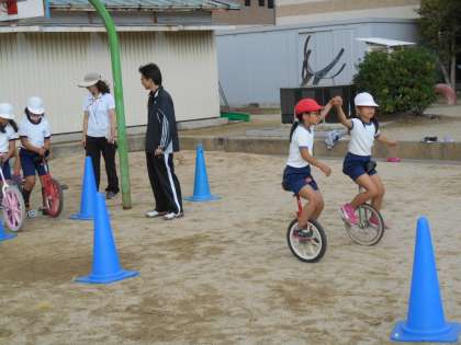 1枚目は、一輪車クラブです。はっきり言ってうまいです。2枚目は、なわとびです。何やら難しい技に挑戦していました。3枚目は将棋クラブです。みんな一生懸命考えていました。好きな人が集まっていますね。