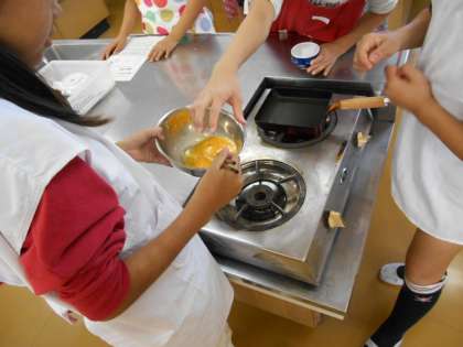 1枚目は理科クラブです。ポップコーンを作っています。どうですか、この身の乗り出し方は。2枚目は調理クラブです。今日はなんと、たまご焼きをつくろうです。意外とおいしいたまご焼きはむずかしいものです。3枚目は、漫画・読書クラブです。ここも好きな人が集まっていますねえ。一生懸命です。