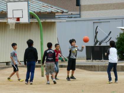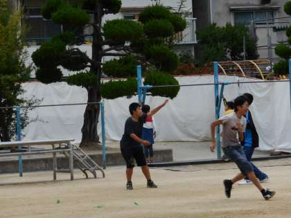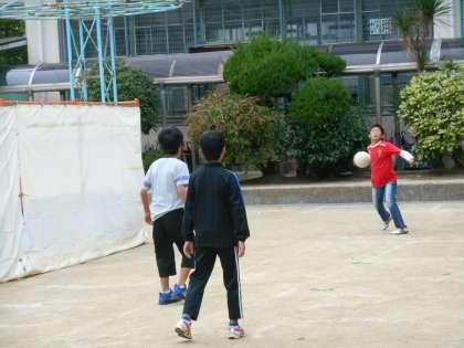 体力づくりがある朝は、なわとびの練習が一斉に始まるのですが、今日はボールで遊ぶ子どもたちが目立ちました。