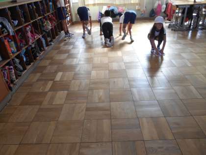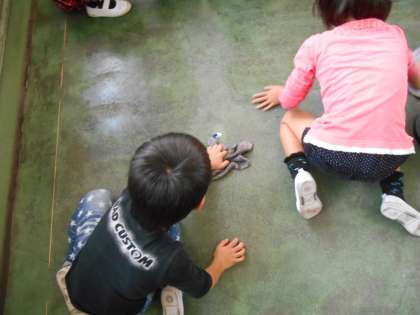 ほんとうにしっかりそうじします。「ありがとう」と言いながら、そうじ時間には、校舎内を回ります。