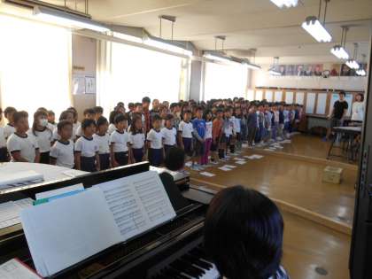 2年生の合音です。音楽会に向けて、がんばって練習しています。今日も、細かな音の伸ばし方について、確認していました。歌声はしっかり出ていましたよ。