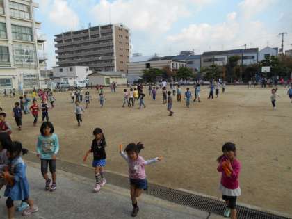 2限後、20分の長い休み時間が終わってすぐの子どもたちの様子です。一斉に校舎に入ってくる様子がうれしくて紹介しました。