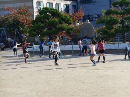 1枚目、花の水やり当番の子たちが水をやっていました。おかげで、きれいな花が咲いています。ありがとう。