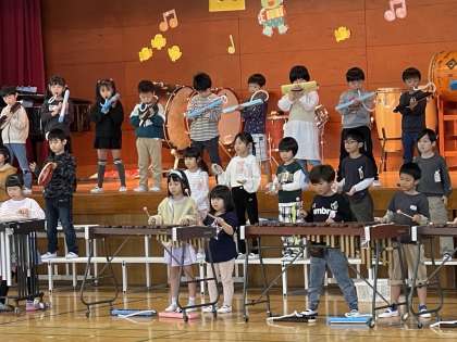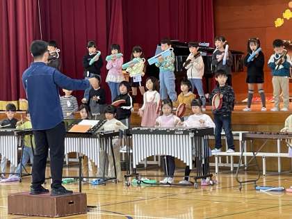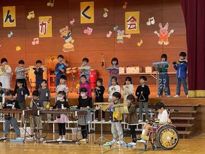 合奏はピアニカやその他いろいろな楽器を使い、演奏していました。初めての音楽会。楽しく演奏できたかな?