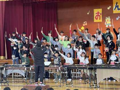 前半は全員が一人一人手作りの太鼓を使って演奏します。
