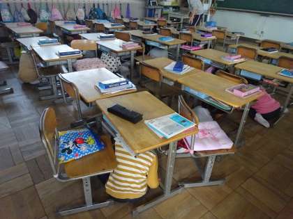 机の下にもぐることや、頭を本や座布団で守って避難することなどがしっかりとできていました。