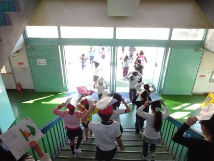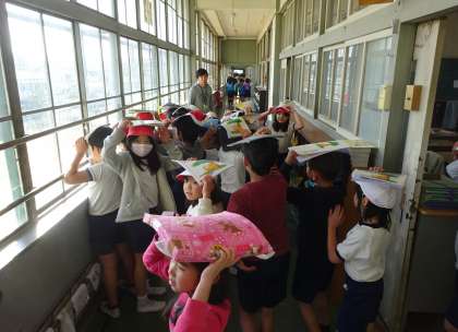 今日は、休み時間に地震が起こった時の避難訓練を行いました。