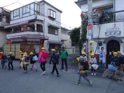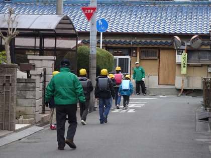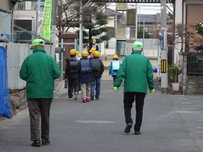 見守り隊の方々が、最後の班に付いて門まで見届けて下さいます。