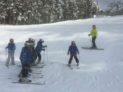 Lessonが続きます。板のはき方、倒れ方、起き方、そして片方だけはいて片足で滑る。など、基本からSTARTしています。