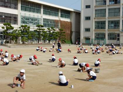 運動会に向けて、1時間目に運動場体育がある学年で「石拾い」をします。