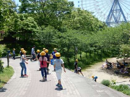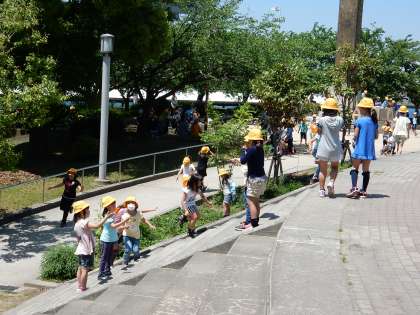 鬼ごっこで走り回ったり、階段でグリコじゃんけんをしていました。