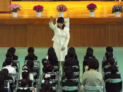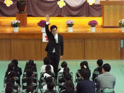 そして、最後に担任の先生の発表がありました。先生のお名前を元気に呼ぶこともできましたね。今日から学校でお世話になるいろんな先生方の紹介もありました。