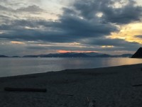 爽やかな朝の海岸に来ました。少しの時間でしたが、子どもたちは、きれいな石や貝がら...