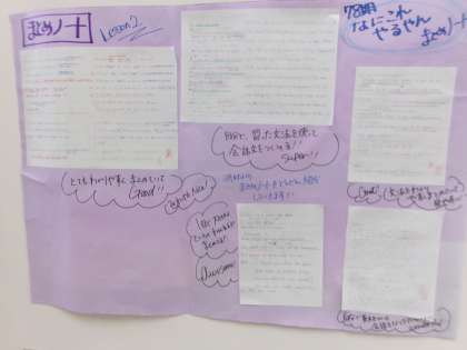 1枚めは、英語ノートを上手にまとめている人の紹介、2枚めは、美化委員会の取組み、3枚めは、3年生が作った高校調べです。