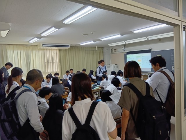 授業後には、見学された先生方による授業の振り返り・協議会を行い、授業の工夫や生徒の学びの様子について意見交換がなされました。さらに、講師としてご来校いただいた大阪教育大学の先生によるご講演もあり、情報活用能力の育成やこれからの授業づくりについて、深い学びを得る機会となりました。また、ご参観いただいた皆様からは、「生徒たちの学習に向き合う姿が素晴らしい」「先生方の授業づくりが工夫されている」といった嬉しいお声もいただきました。